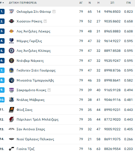 Στο μεγάλο παιχνίδι της Δύσης οι Θάντερ επικράτησαν των Λέικερς με 136-120. Ο Σάι Γκίλτζιους-Αλεξάντερ με 42 πόντους ήταν ο κορυφαίος των νικητών, ενώ για το Λος Άντζελες στοίχησε η αποβολή του Λούκα Ντόντσιτς, λόγω ενός διαλόγου που είχε με φίλαθλο της αντίπαλης ομάδας.