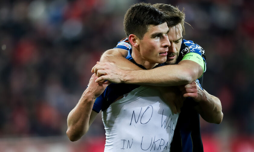 Ο Ρουσλάν Μαλινόφσκι ήταν ο παίκτης που με δικά του γκολ έσβησε κάθε ελπίδα του Ολυμπιακού για την πρόκριση επί της Αταλάντα στο Europa League. Και τα πανηγύρισε με σύνθημα στη φανέλα του κατά του πολέμου στην Ουκρανία. Στα παιχνίδια της Αταλάντα με τον Ολυμπιακό δεν αγωνίστηκε ο Αλεξέι Μίραντσουκ, ο οποίος ήταν τραυματίας και επέστρεψε στη νίκη της ομάδας του επί της Σαμπντόρια λίγες μέρες αργότερα πετυχαίνοντας το τέταρτο γκολ. Δίχως να το πανηγυρίσει, περπατώντας έφυγε προς τη σέντρα, δεν είχε να πανηγυρίσει κάτι.