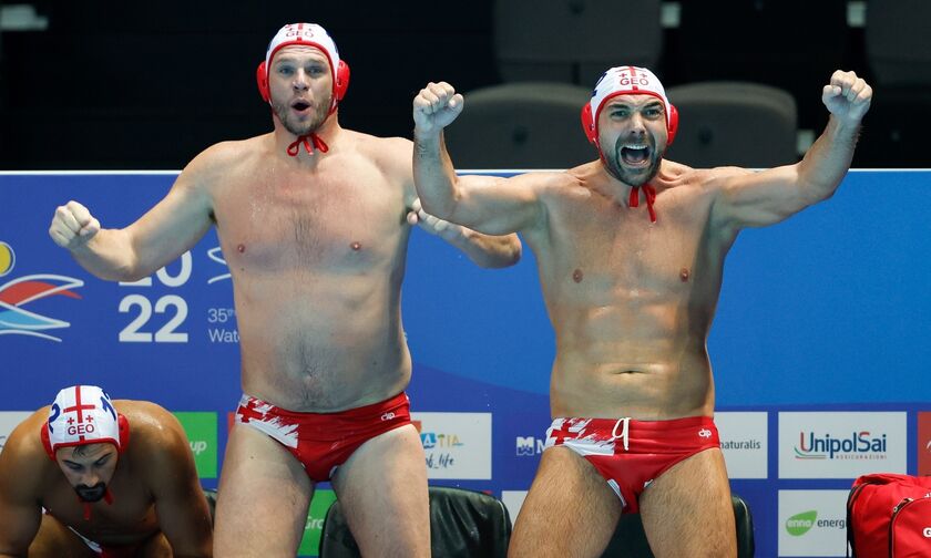 Τρελό γλέντι στα αποδυτήρια της Γεωργίας μετά την πρόκριση στα προημιτελικά του Ευρωπαϊκού Πρωταθλήματος πόλο ανδρών.