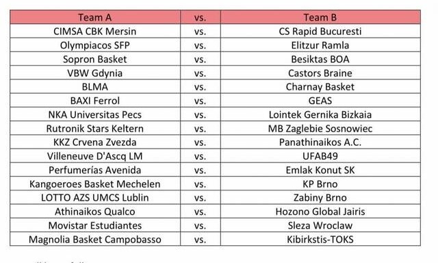 Τα ζευγάρια της φάσης των 32 του EuroCup Γυναικών.