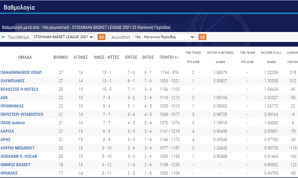 Basket League: Το πανόραμα της 16ης αγωνιστικής - Μαζί στην κορυφή Ολυμπιακός και Παναθηναϊκός