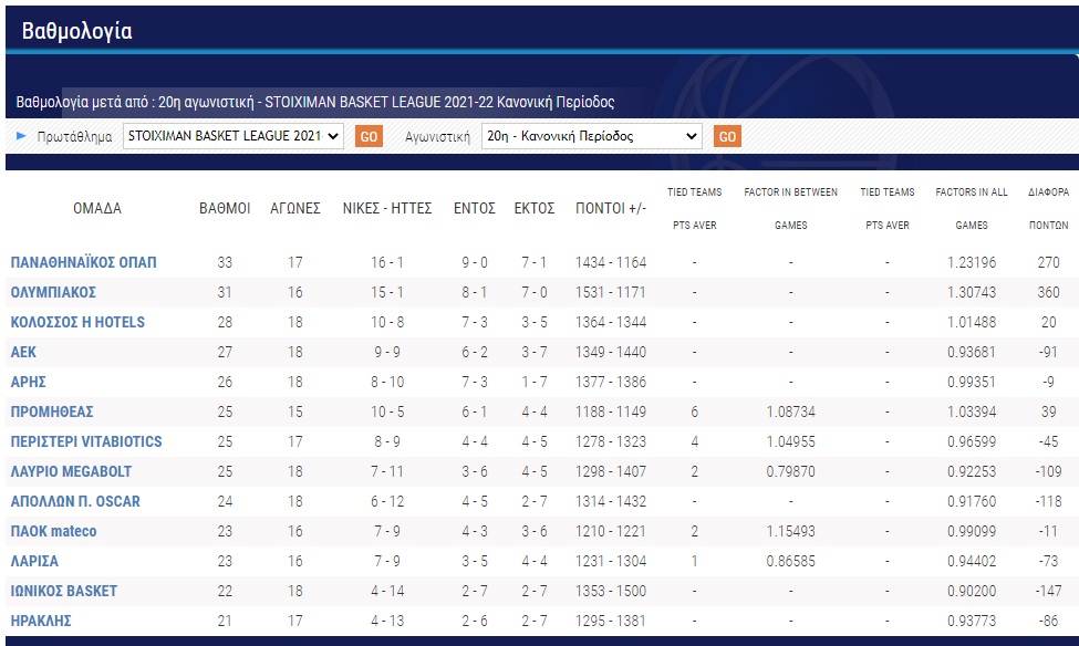 Η βαθμολογία στη Basket League μετά τα εξ αναβολής παιχνίδια