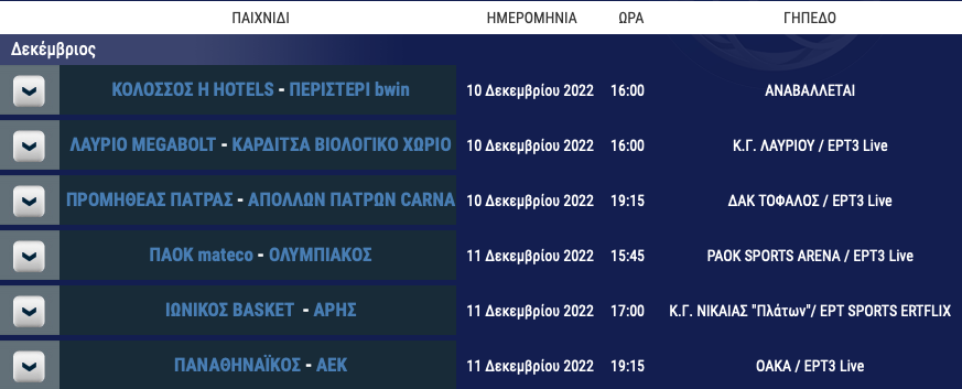 Το πρόγραμμα της αγωνιστικής: