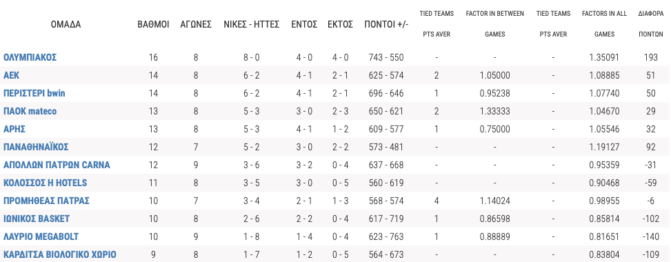Η βαθμολογία στην Basket League: