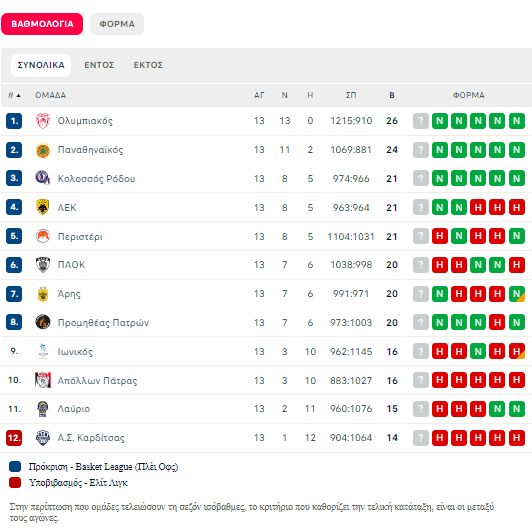 Basket League: Το πανόραμα της 13ης αγωνιστικής - Παραμένει αήττητος ο Ολυμπιακός