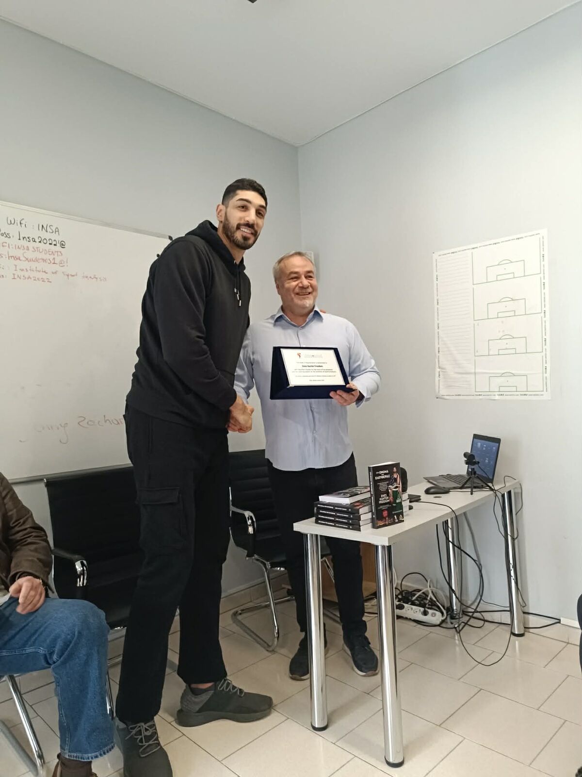 Με ιδιαίτερο ενθουσιασμό παρουσίασε και τα δωρεάν basketball camps που διοργανώνει για παιδιά, υπογραμμίζοντας πως το ταλέντο και το παιχνίδι δεν πρέπει να περιορίζονται από οικονομικά εμπόδια, ενώ πρότεινε τη συνεργασία των προπονητών και του Ινστιτούτου στο επικείμενο basketball camp που θα διοργανώσει την Ελλάδα το καλοκαίρι. Η ομιλία ολοκληρώθηκε με φωτογραφίες, υπογραφές και μια διάχυτη αίσθηση έμπνευσης.