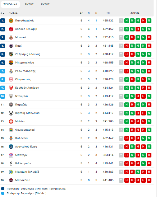 Ευρωλίγκα 2025-26: Το πανόραμα - Αποτελέσματα, βαθμολογία - 1ος ο ΠΑΟ, 8ος ο Ολυμπιακός