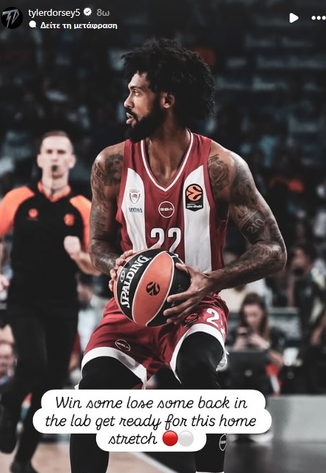 Το μήνυμα του Τάιλερ Ντόρσεϊ, μετά την ήττα του Ολυμπιακού από τη Ρεάλ στη Μαδρίτη.