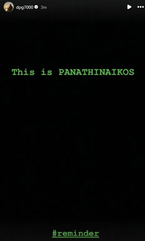 Στο story του, χρησιμοποίησε το hashtag #Reminder μαζί με τη φράση «Εδώ είναι Παναθηναϊκός», θέλοντας να υπενθυμίσει την ιστορία και την ταυτότητα του συλλόγου.