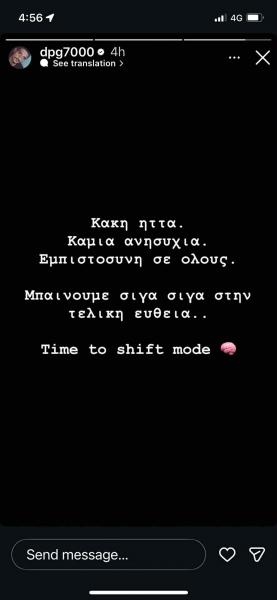 «Κακή ήττα. Καμία ανησυχία. Εμπιστοσύνη σε όλους. Μπαίνουμε σιγά σιγά στην τελική ευθεία. Time to shift mode (μτφ: ώρα να αλλάξουμε τρόπο)».