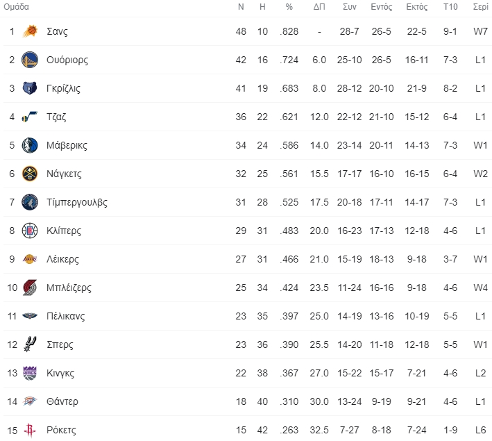 Νταμπλ-νταμπλ ο Αλεξέι Ποκουσέφσκι (10 πόντοι, 10 ριμπάουντ) στην ήττα των Θάντερ από τους Σπερς. Σημαντική επικράτηση των Νάγκετς (116-117) επί των Ουόριος. Σπουδαίο ματς έγινε στο Γκόλντεν Στέιτ, με τους Νάγκετς να επιστρέφουν από το -16 και να επικρατούν με 117-116 των Γουόριορς χάρη σε buzzer-beater τρίποντο του Μόντε Μόρις.