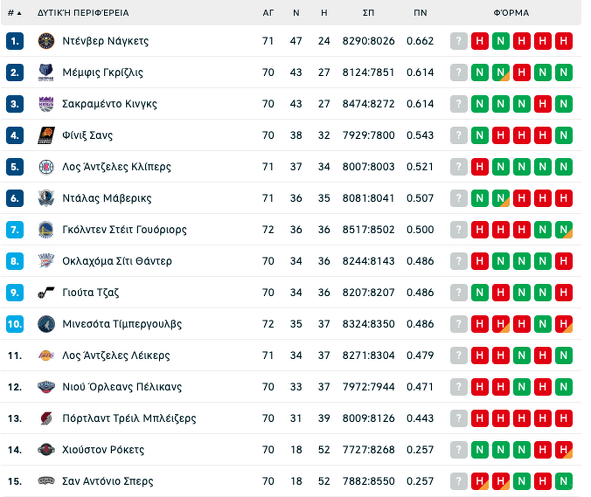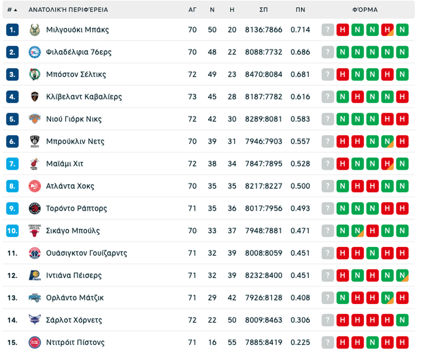 Τα αποτελέσματα των αγώνων που έγιναν τα ξημερώματα του Σαββάτου (19/3) στο ΝΒΑ και οι βαθμολογίες σε Ανατολή και Δύση.