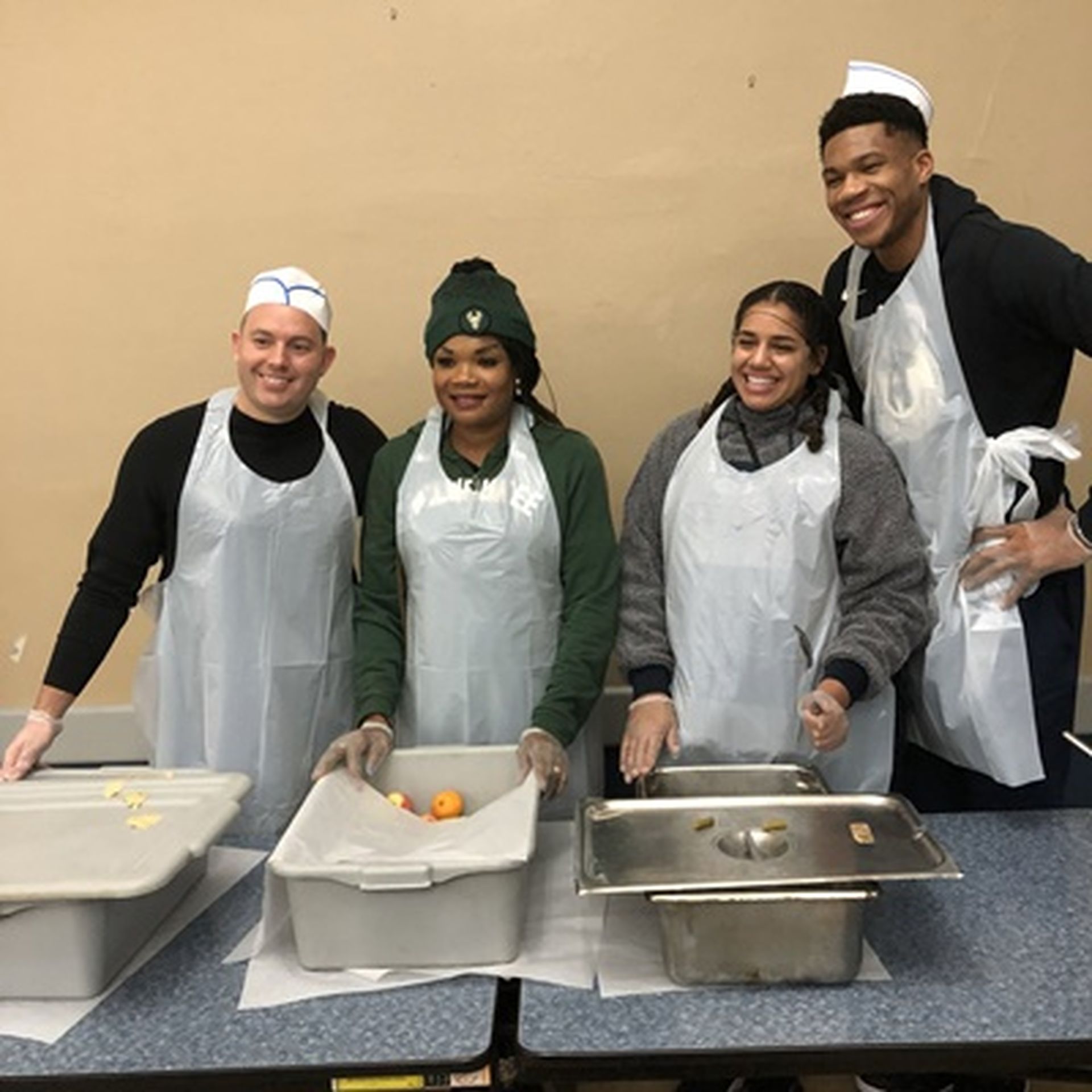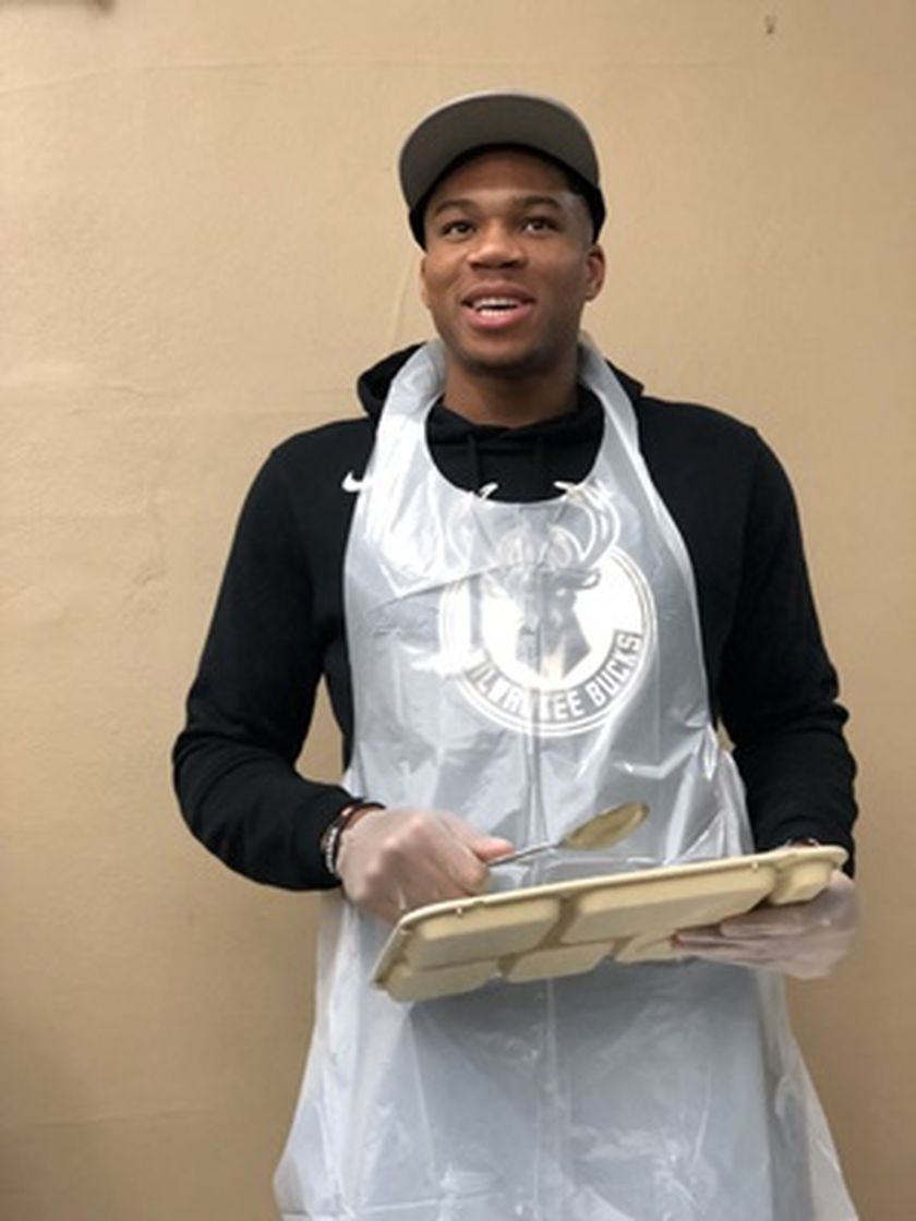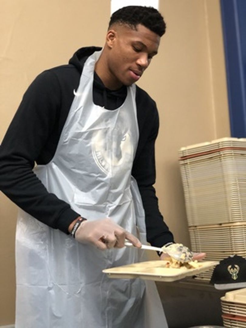 Συνοδευόμενος από τη σύντροφό του αλλά και τη μητέρα του, βοήθησαν στην τροφοδότηση του κέντρου St. Vincent de Paul, ετοίμασαν αλλά και σέρβιραν ζεστό φαγητό σε ανθρώπους που το έχουν απόλυτη ανάγκη για να επιβιώσουν. Όπως αναφέρουν τα social media των Μιλγουόκι Μπακς, συνολικά εξασφαλίστηκαν 27.000 μερίδες φαγητό.