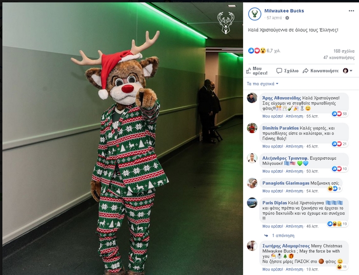 Αυτή την φορά, η ΚΑΕ... Ελαφιακός, μέσω του επίσημου προφίλ των Μπακς στα social media, ευχήθηκε χρόνια πολλά και καλά Χριστούγεννα στους Έλληνες φιλάθλους.