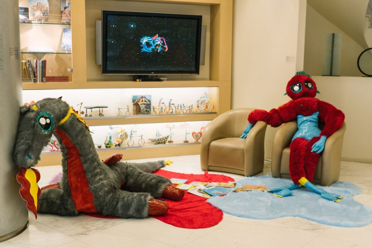 Η έκθεση ξεκινά καλώντας τους θεατές να οικειοποιηθούν τα έργα σου με μία συμμετοχική εγκατάσταση που ονομάζεται «Spooning» και αποτελείται από δύο κλασικούς πρωταγωνιστές παραμυθιών. Ενώ έχουμε συνηθίσει να τους αντικρίζουμε ως ένα δίπολο, την «όμορφη πριγκίπισσα» και τον «κακό δράκο», αυτό δεν συμβαίνει στην δική σου εκδοχή. Με ποιον τρόπο θεωρείς ότι μπορεί να λειτουργήσει αυτό στο κοινό;