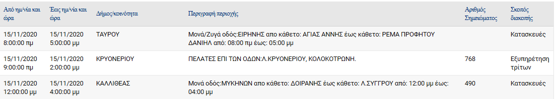 Αναλυτικά οι περιοχές, οδοί και ώρες της διακοπής:
