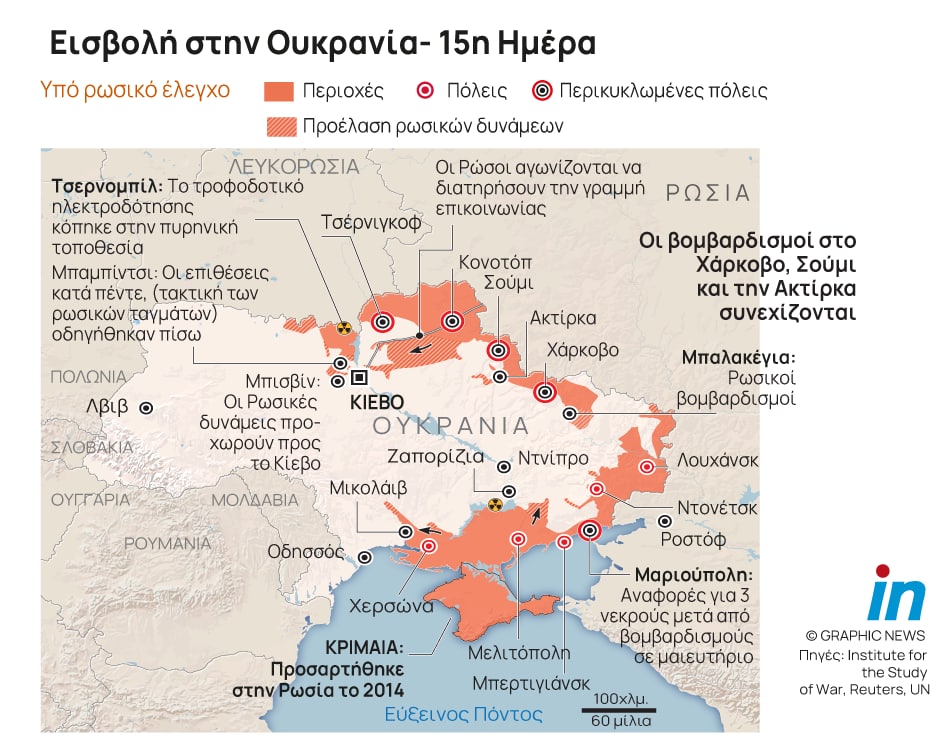 Η πολιορκία του Κιέβου συνεχίζεται, ενώ ο ρωσικός στρατός έχει αρχίσει να συγκεντρώνει δυνάμεις και από τη βορειανατολική πλευρά.