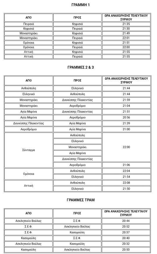 Αυτά είναι τα τελευταία δρομολόγια σε Μετρό, ΗΣΑΠ και Τραμ (pic)