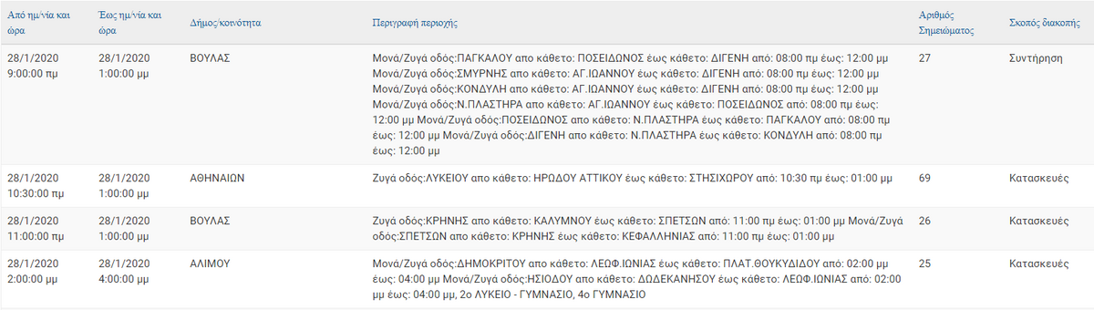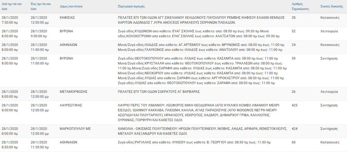 Αναλυτικά οι περιοχές, οι οδοί και οι ώρες: