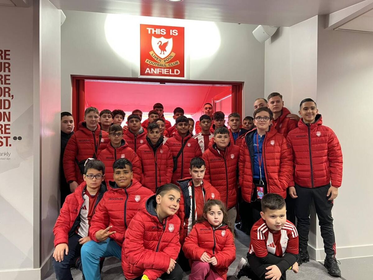 Στην Αγγλία ταξίδεψαν ποδοσφαιριστές, προπονητές και γονείς των παιδιών και βρέθηκαν στο Λίβερπουλ και το Άνφιλντ και στο Νότιγχαμ.