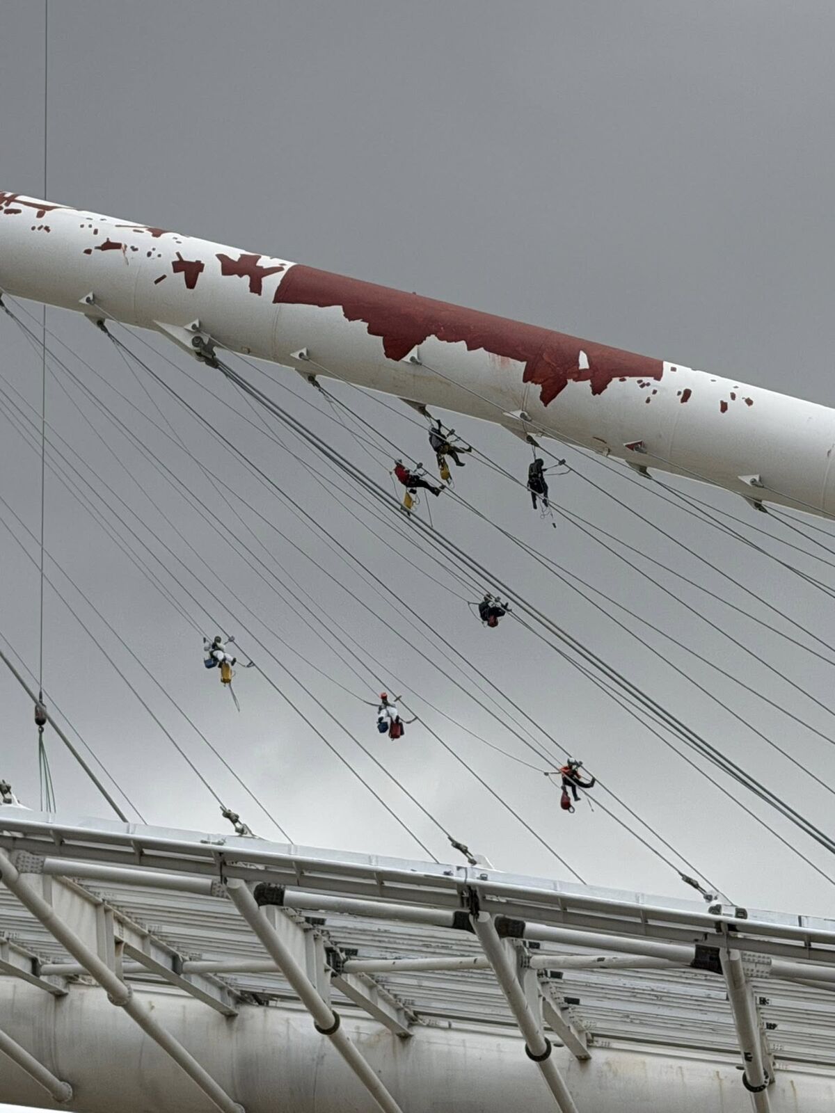Η πολυπλοκότητα του έργου εντείνεται από το γεγονός ότι το σύνολο των εργασιών εκτελείται σε μεγάλο ύψος, έως και 62 μέτρα από τη βάση της κατασκευής (μέγιστο ύψος άνω τόξου), γεγονός που απαιτεί εξειδικευμένα συστήματα πρόσβασης, αυστηρά πρωτόκολλα ασφάλειας και προσωπικό υψηλής κατάρτισης. Οι συνθήκες εργασίας σε τέτοιο ύψος, σε συνδυασμό με τη χρήση εξοπλισμού υπερυψηλής πίεσης και την ανάγκη ακρίβειας εφαρμογής, καθιστούν το έργο ιδιαίτερα σύνθετο και τεχνολογικά απαιτητικό.