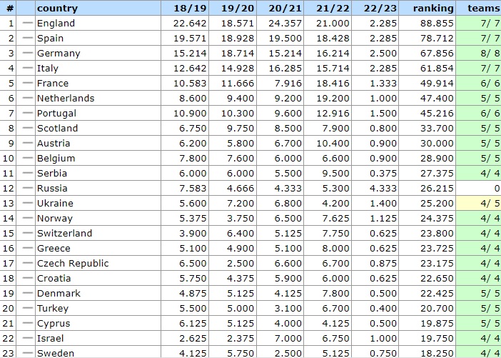 Ακολουθεί στην 17η η Τσεχία σε απόσταση... αναπνοής (23.175), ενώ στην 15η θέση βρίσκεται η Ελβετία με 23.800