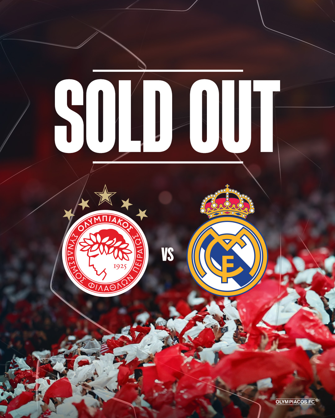 Ο Ολυμπιακός ανακοίνωσε sold out για τον αγώνα με τη Ρεάλ. Σε χρόνο ρεκόρ η εξαφάνιση των εισιτηρίων, με 220.000 διαφορετικούς χρήστες!