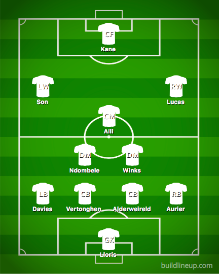 Οι τριάδα στο κέντρο αναμένεται να είναι οι Ντεμπελέ, Σισοκό και Γουίνκς. Πίσω από τον μοναδικό προωθημένο Χάρι Κέιν θα παίξουν οι Ντέλε Άλι και Λούκας Μόουρα.