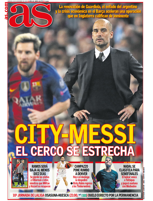 «Η ανανέωση του Πεπ, οι οικονομικές δυσκολίες της Μπαρτσελόνα και η δυσαρέσκεια του Μέσι, επισπεύδουν τις διαδικασίες για μια μεταγραφή την οποία στην Αγγλία θεωρούν ότι θα σημειωθεί άμεσα» αναφέρει η«AS» στο πρωτοσέλιδο της Παρασκευής.
