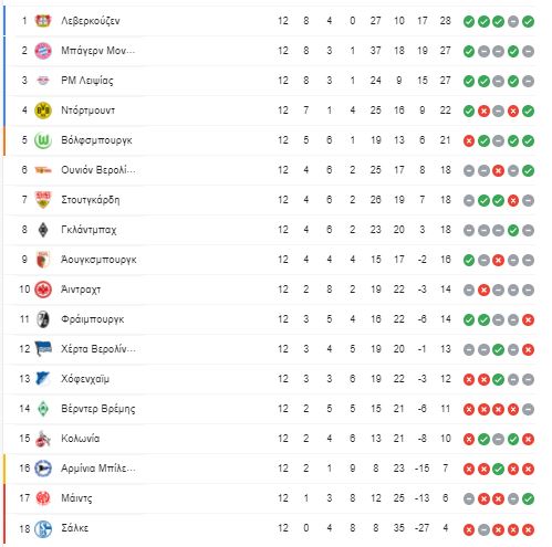 Κατά τα άλλα σημαντική εκτός έδρας νίκη πέτυχε η Λειψία με 1-0 επί της Χόφενχαϊμ σε ένα παιχνίδι που τα βρήκε σκούρα. Αντίθετα πολύ κακό ήταν και αυτό το βράδυ για τη Σάλκε, η οποία έχασε με 2-0 εντός έδρας από τη Φράιμπουργκ και παράμεινε στην τελευταία θέση της βαθμολογίας. Η πρωτοπόρος της βαθμολογίας Λεβερκούζεν πέρασε σαν… σίφουνας από την Κολωνία.