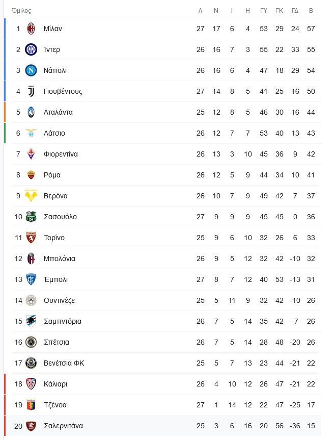 Από την άλλη πλευρά οι «βιόλα» όχι μόνο δεν τρίτωσαν τις νίκες τους, αλλά έφυγαν με άδεια χέρια από το «Μαπέι». Δέχθηκαν νωρίς το γκολ, στη συνέχεια αντέδρασαν είχαν ευκαιρίες για να ισοφαρίσουν, το κατάφεραν στο 88’ με τον Καμπράλ, αλλά στην τελευταία φάση του ματς δέχθηκαν το γκολ-μαχαιριά που τους αφήνει οριακά έξω από την προνομιούχο εξάδα της κατάταξης.