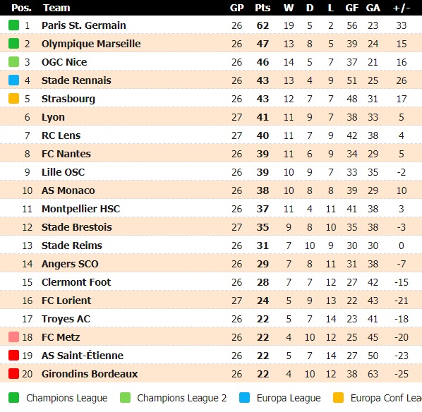 Με μια έκπληξη ξεκίνησε το Σάββατο (5/3) η δράση στη Γαλλία στο πλαίσιο της 27ης αγωνιστικής.
