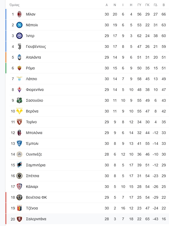 Ο 18χρονος στράικερ Μουσταφά Σισέ μπήκε αλλαγή για πρώτη φορά σε ματς της Αταλάντα και της χάρισε την νίκη στην Μπολόνια (0-1). Τα αποτελέσματα και η βαθμολογία