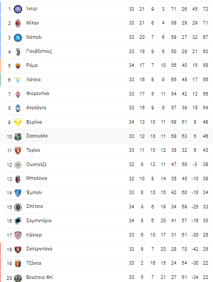 Βενέτσια – Αταλάντα 1-3 (80' Κρνιγκόι - 44' Πάσαλιτς, 47' Ζαπάτα, 63' Μουριέλ)