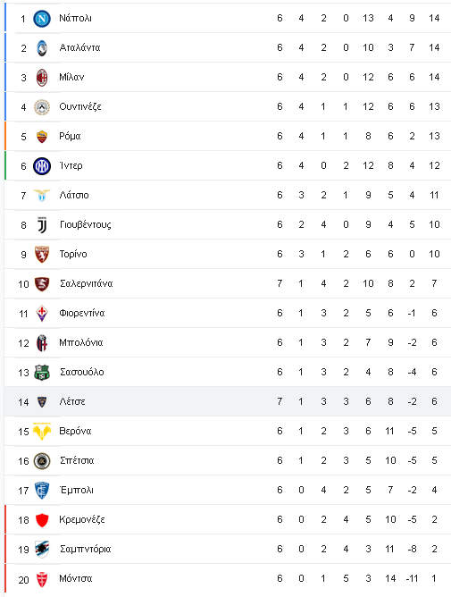 Τρεις αναμετρήσεις περιλαμβάνει το πρόγραμμα της 7ης αγωνιστικής της Serie A το Σάββατο (17/9). Το πρόγραμμα και η βαθμολογία.