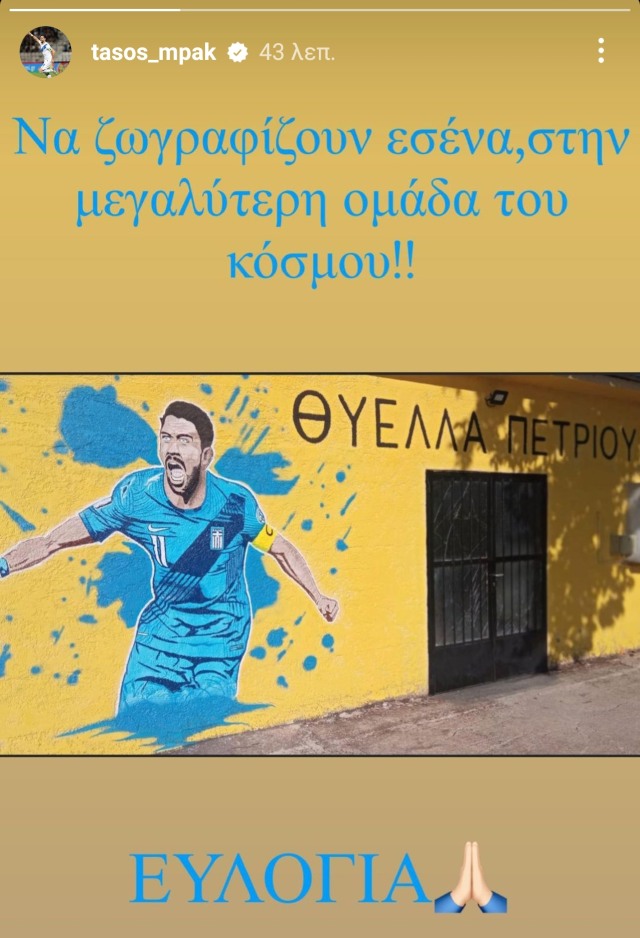 Το εντυπωσιακό γκράφιτι ανάρτησε στον προσωπικό του λογαριασμό στο instagram ο ίδιος ο ποδοσφαιριστής γράφοντας: «Να ζωγραφίζουν εσένα, στην μεγαλύτερη ομάδα του κόσμου!! ΕΥΛΟΓΙΑ».