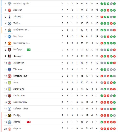Με νίκες των γηπεδούχων ξεκίνησε η 8η αγωνιστική της Premier League και με τη Μάντσεστερ Σίτι να επιστρέφει στην κορυφή της βαθμολογίας.
