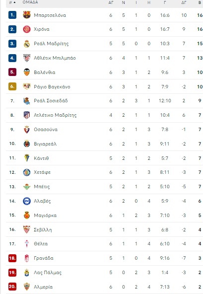 Ράγιο Βαγεκάνο και Βιγιαρεάλ αναδείχθηκαν ισόπαλες 1-1 στο Βαγέκας της Μαδρίτης με τους γηπεδούχους να διατηρούν την απόσταση των τριών βαθμών από τους αντιπάλους τους. Αποτελέσματα και βαθμολογία της 6ης αγωνιστικής στη La Liga