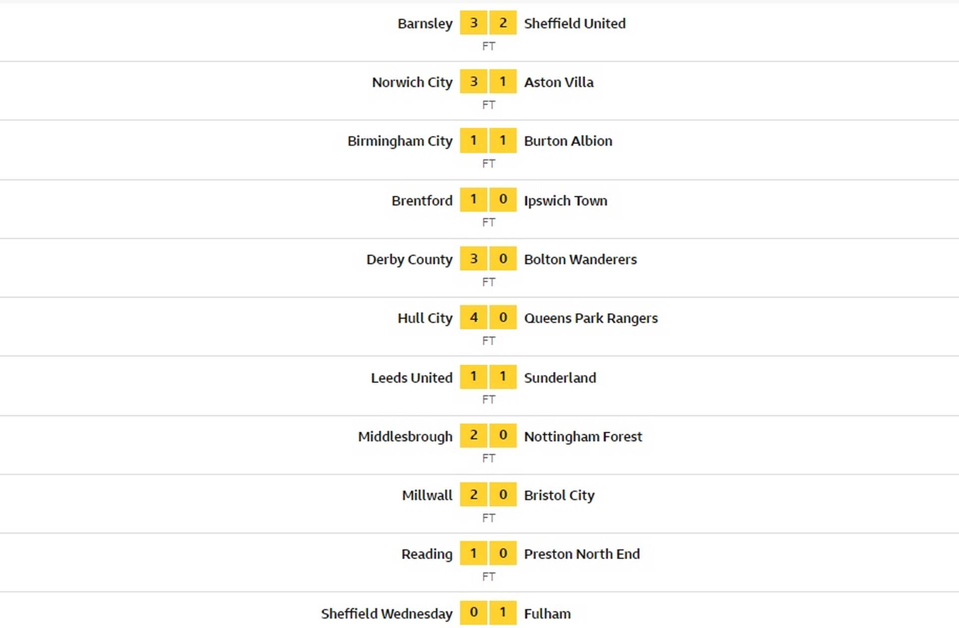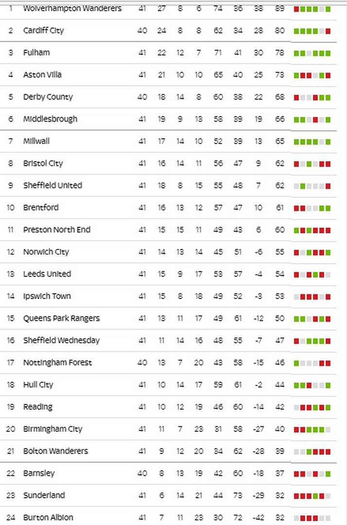 Δείτε τα αποτελέσματα και τη βαθμολογία της Championship