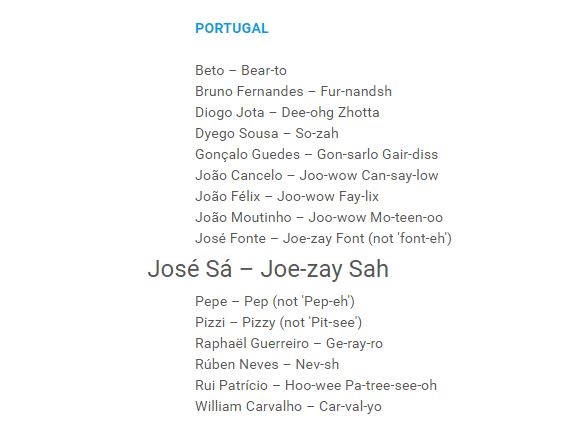 Η UEFA δημοσίευσε έναν κατάλογο με ονόματα των διεθνών ποδοσφαιριστών από Αγγλία, Ολλανδία, Πορτογαλία, Ελβετία για να μας βοηθήσει να τα προφέρουμε σωστά.