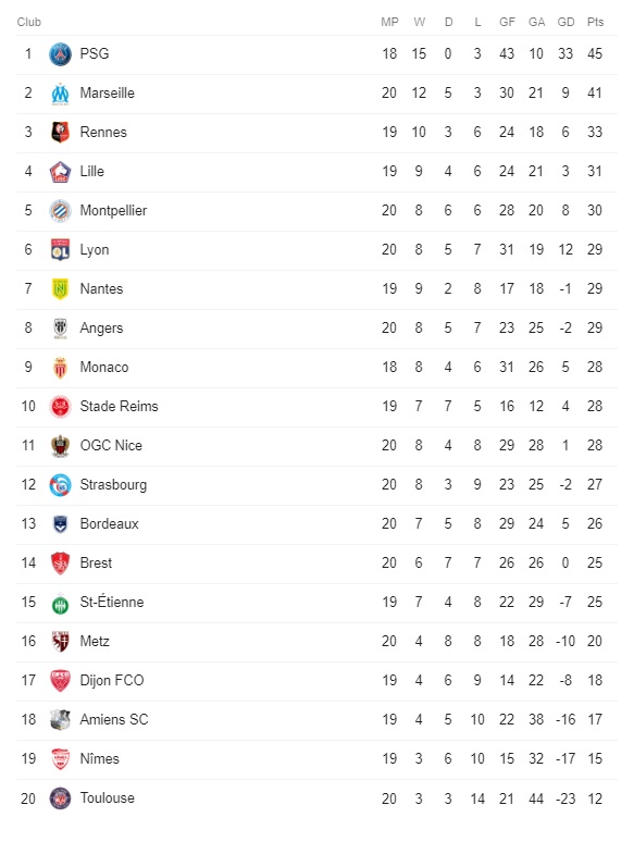 Στα βραδινά παιχνίδια του Σαββάτου, η Μπρεστ πέτυχε το σκορ της ημέρας συντρίβοντας εκτός έδρας την ουραγό Τουλούζ με σκορ 5-2, ενώ η Μονπελιέ πέρασε έστω και δύσκολα από την έδρα της Αμιάν (1-2).
