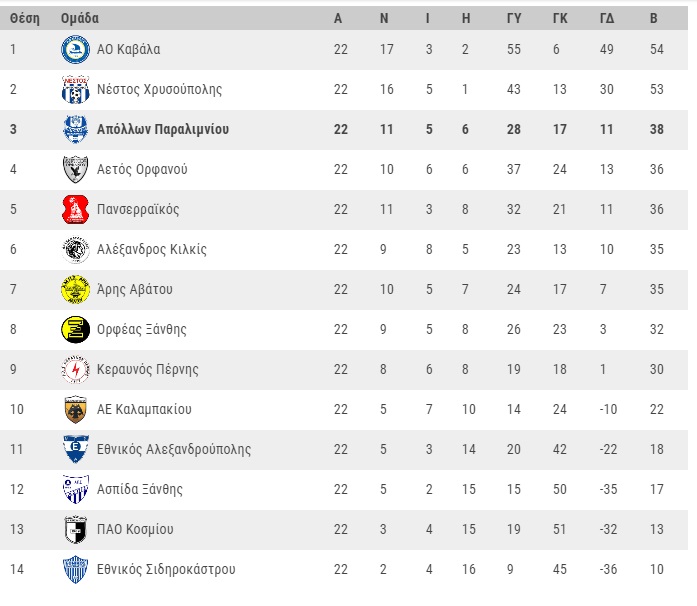 Η επόμενη αγωνιστική (23η 24/3 15.00): Απόλλων Παραλιμνίου – Εθνικός Αλεξανδρούπολης, Ασπίδα Ξάνθης – ΑΕ Καλαμπακίου, Καβάλα – Αλέξανδρος Κιλκίς, Κεραυνός Πέρνης – Αετός Ορφανού, Ορφέας Ξάνθης – Νέστος Χρυσούπολης – ΠΑΟ Κοσμίου – Πανσερραϊκός, Εθνικός Σιδηροκάστρου – Άρης Αβάτου