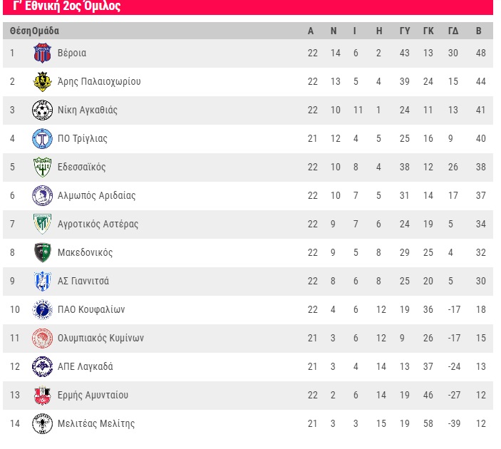 Η επόμενη αγωνιστική (23η 24/3 15.00): ΠΑΟ Κουφαλίων – Γιαννιτσά, Μακεδονικός – Αγροτικός Αστέρας, Τρίγλια – Ολυμπιακός Κυμίνων, Αλμωπός Αριδαίας – Άρης Παλαιοχωρίου, Νίκη Αγκαθιάς – Εδεσσαϊκός, Ερμής Αμυνταίου – Μελιτέας Μελίτης, ΑΠΕ Λαγκαδά – Βέροια