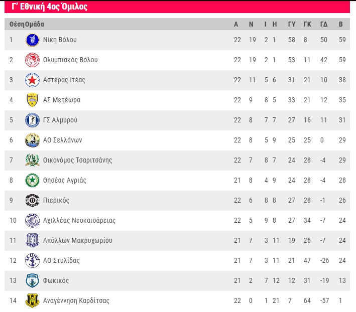 Η επόμενη αγωνιστική (23η 24/3 15.00): ΑΟ Σελλάνων – Πιερικός, Θησέας Αγριάς – Μετέωρα, Στυλίδα – Οικονόμος Τσαριτσάνης, Νίκη Βόλου – Αλμυρός, Αναγέννηση Καρδίτσας – Ολυμπιακός Βόλου (ματαιώθηκε), Φωκικός – Αστέρας Ιτέας, Αχιλλέας Νεοκαισάρειας – Απόλλων Μακρυχωρίου