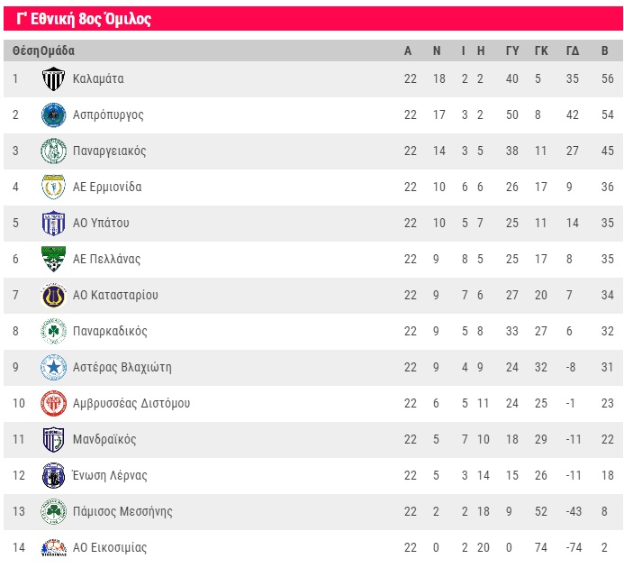 Νίκη για Εθνικό και Καλαμάτα - Όλα τα αποτελέσματα και οι βαθμολογίες της Γ' Εθνικής