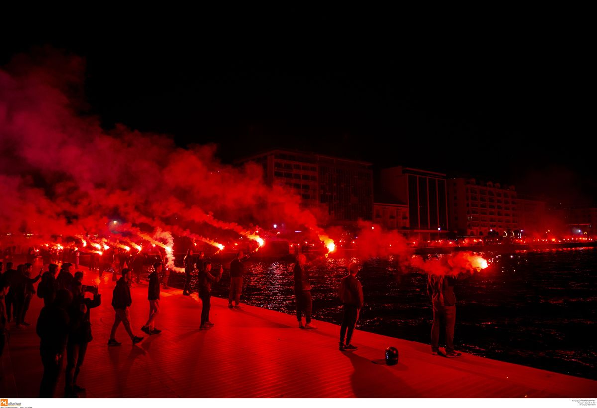 Πριν από λίγες ώρες οι οπαδοί του ΠΑΟΚ, δημιούργησαν όμορφη ατμόσφαιρα στην παραλία Θεσσαλονίκης, ανάβοντας εκατοντάδες πυρσούς.