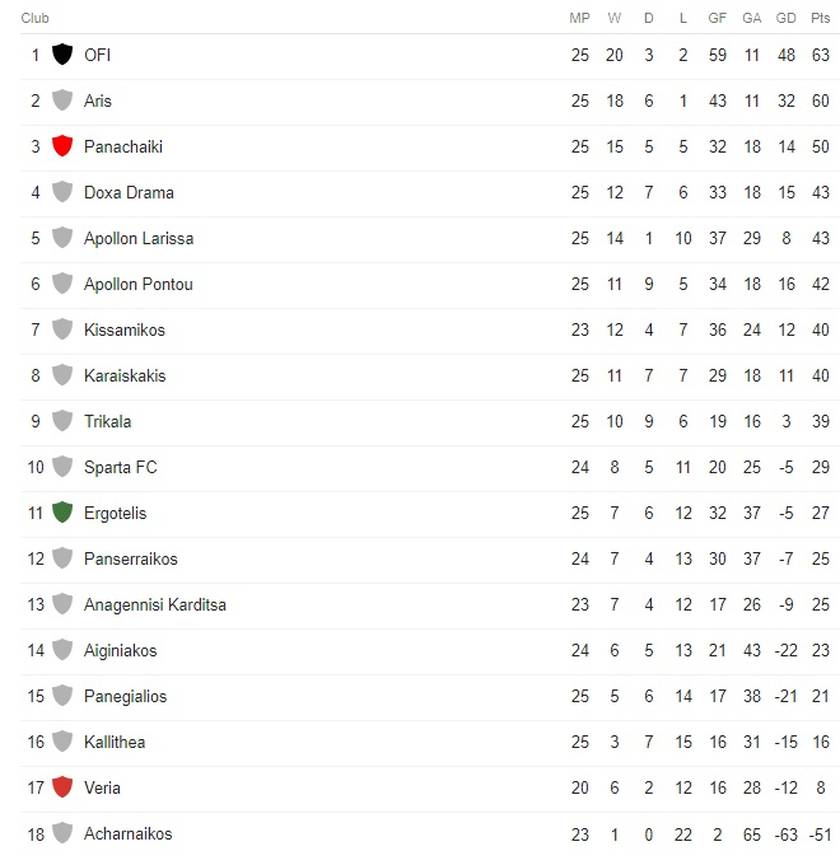 Τα αποτελέσματα της 25ης αγωνιστικής: