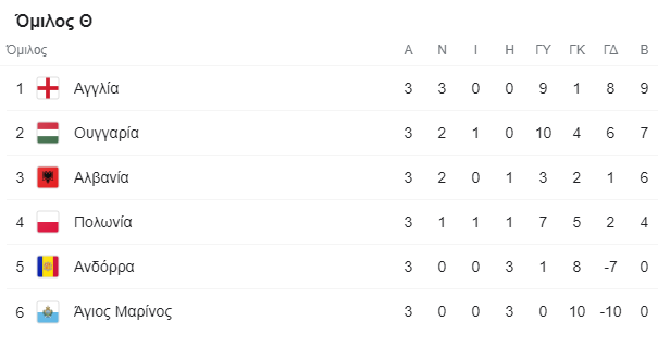15/11: Πολωνία – Ουγγαρία, Σαν Μαρίνο – Αγγλία, Αλβανία – Ανδόρα