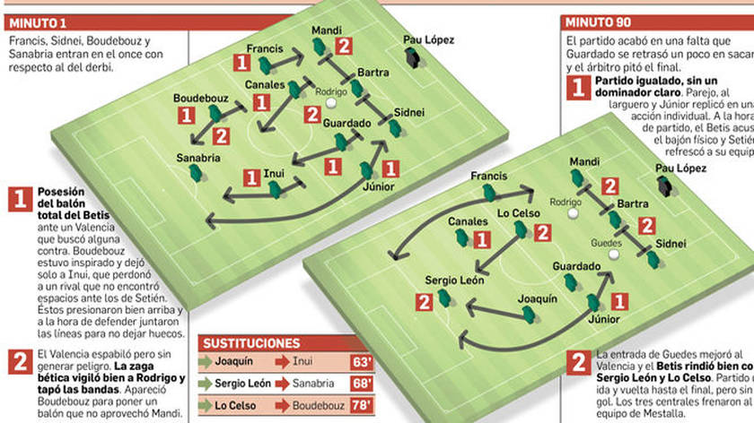 Όλα αυτά καλά, όμως, το πρόβλημα είχε να κάνει με το επιθετικό κομμάτι της Μπέτις. Ο Σανάμπρια δεν έδωσε ταχύτητα στην ομάδα του αν και είχε κατοχή, ενώ ο Μπουντεμπούζ επιχείρησε να παίξει κάθετο ποδόσφαιρο κάτι που δεν του βγήκε. Επίσης και ο Ινούι δεν βοήθησε καθόλου προκειμένου να φτιάξει κάτι η ομάδα του. Η ομάδα του Σετιέν εμφανίστηκε βελτιωμένη στην επίθεση μετά την είσοδο του Λεόν, αλλά και πάλι δεν μπόρεσε να βρει τον δρόμο προς τα δίχτυα. Σε γενικές γραμμές ακόμα ψάχνει την ισορροπία της, αφού αν και λειτουργεί καλά ανασταλτικά δεν μπορεί να ισχυριστεί κανείς το ίδιο για την επίθεση της παρά το γεγονός ότι είναι ομάδα που μπορεί να κρατήσει τη μπάλα στα πόδια της και να έχει την κατοχή στη μεγαλύτερη διάρκεια της αναμέτρησης.