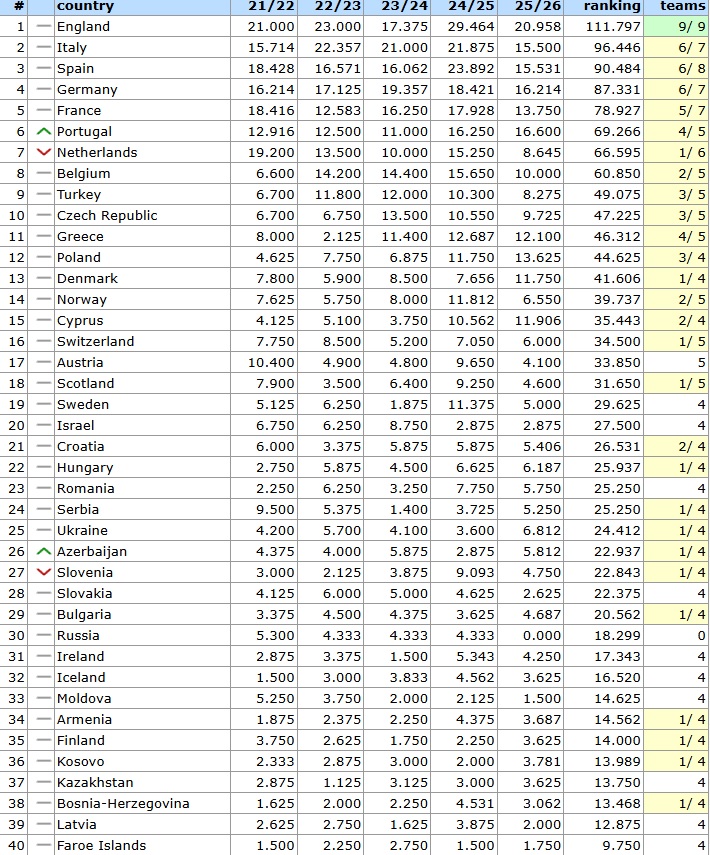 Η βαθμολογία της UEFA